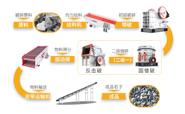 組成設(shè)備:給料機(jī)、鄂破、反擊破、圓錐破、振動(dòng)篩、皮帶輸送機(jī)、集中電控設(shè)備等