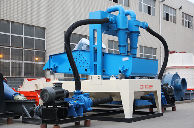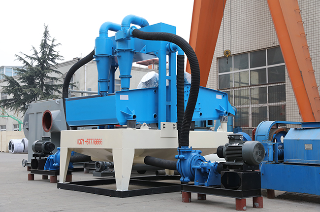細沙回收機通過渣漿泵將濃度≤40%的泥漿注入水力旋流分離器進行分離,分離出的粗粒部分進入脫水篩脫水回收。最大限度的回收0.075mm以上的材料,去除0.075mm以下的污泥和黏土,可以與現(xiàn)有生產(chǎn)線上的洗砂機配套使用,也可以單獨使用,提升資源利用率, 實現(xiàn)收益最大化。分離出的粗粒部分進入脫水篩脫水回收。最大限度的回收0.075mm以上的材料,去除0.075mm以下的污泥和黏土,