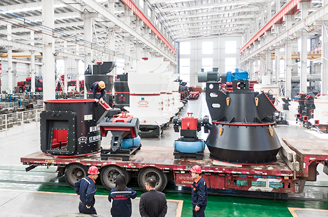 主電機通過減速機帶動磨盤轉(zhuǎn)動,固定的磨輥沿磨盤滾道自轉(zhuǎn)。物料從下料口落在磨盤中央,在離心力的作用下,物料從磨盤中央向邊緣勻速移動,經(jīng)過粉磨滾道時,受到磨輥的碾壓,碾磨力由液壓加載系統(tǒng)提供,大塊物料直接被壓碎,細(xì)粒物料受擠壓后形成料床進(jìn)行粒間粉碎。烘干與粉磨同時進(jìn)行,一次熱風(fēng)通過風(fēng)環(huán)均勻進(jìn)入磨盤周圍,將經(jīng)過輾磨從磨盤上切向甩出的粉碎物料烘干并輸送到上部選粉機處,在轉(zhuǎn)子葉片的作用下,粗顆粒重新回到磨盤上粉磨(內(nèi)循環(huán)),合格的細(xì)粉隨氣流一起出磨,被系統(tǒng)集粉器收集,即為成品;少部分難粉碎且一次風(fēng)吹不起的較大顆粒、雜質(zhì)等通過風(fēng)環(huán)跌落至磨機下部一次風(fēng)室被刮料裝置排出機外,或經(jīng)輸送設(shè)備由進(jìn)料口進(jìn)入立磨重新粉磨(外循環(huán))。